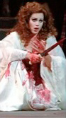 Donizetti’s retelling of Sir Walter Scott’s novel about the worst wedding night ever is plenty dark and moody, thanks to director David Gately. Most of the scenes come up with a spotlight on a main character who appears to be this white presence floating in a sea of darkness. Things don’t get much brighter than that for most of the characters.